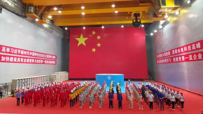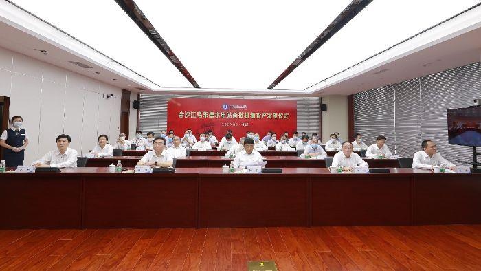 國務院國資委、國家能源局、四川省、云南省、南方電網、各參建單位以及三峽集團有關部門、單位負責同志在北京、成都、昆明、廣州和烏東德水電站等會場以視頻連線方式參加投產發電儀式。